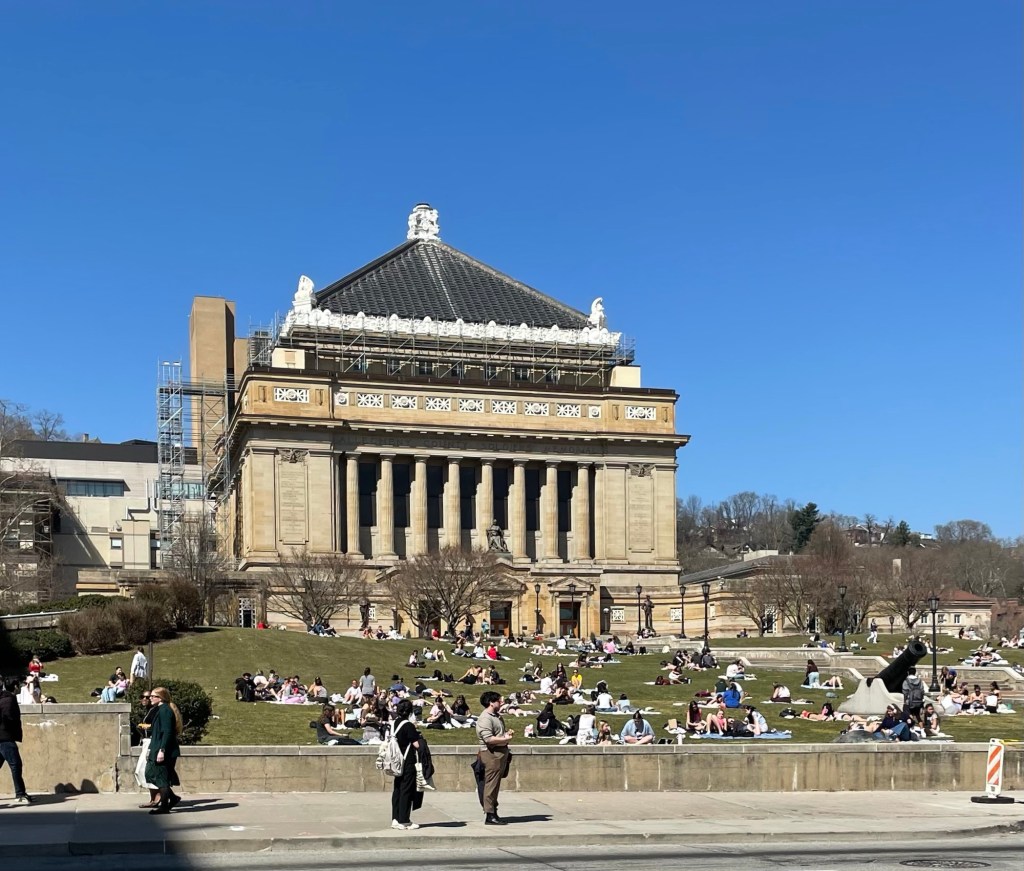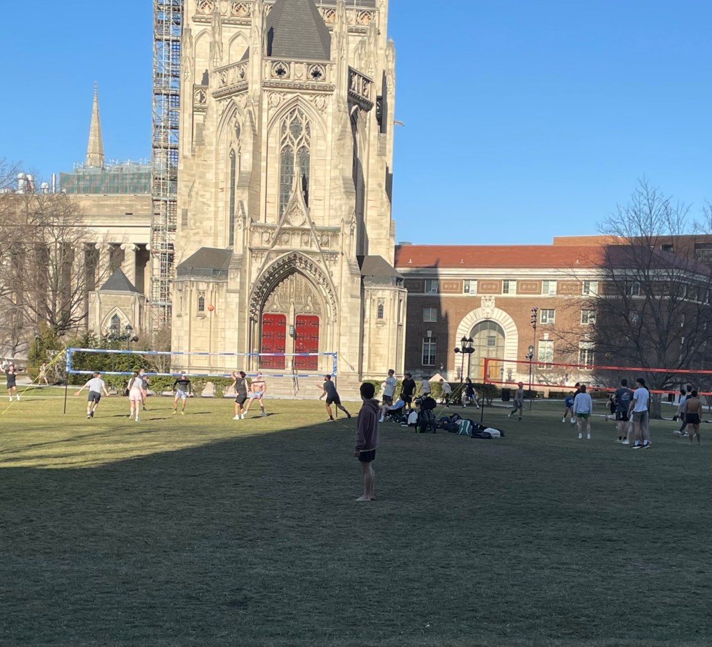 Spring day on campus after an extra cold, snowy winter that wouldn’t let go. Students spread out their blankets in the sun all across campus, picnicked, read, studied and played volley ball lending a festive air to the afternoon. Too bad the nice weather didn’t linger longer. Even so, spring is near.